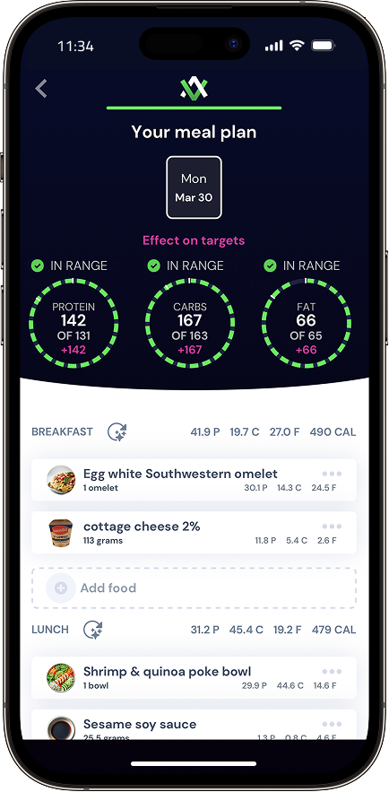Don't know what to eat? Let Avatar generate a full day of meals tailored to your goals.